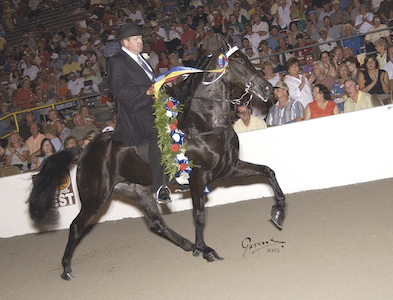 Perhaps his name should have given us a clue, but how could one expect any horse to have the heart and the stamina to win two hard fought World Grand Championship titles after making three winning performances already that week. Double Java had all that and a double shot of adrenaline to carry both trainer Scott Benham and his son Mac to World Grand Championship titles in the lite shod pleasure division of the 2003 Celebration.
