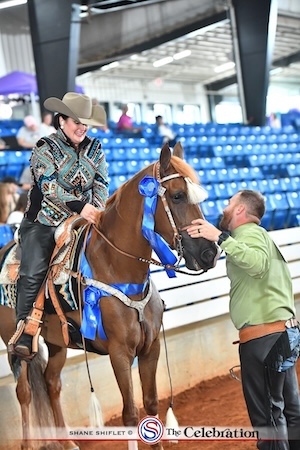 SHELBYVILLE, Tenn. – The Celebration is officially underway! Everyone piled into Cooper Steel Arena on Thursday morning, combatting the overcast skies with bright attitudes and shining showmanship. Thursday morning’s schedule was dominated by novice classes, AOT classes, two-year-old classes and three-year-old classes.
