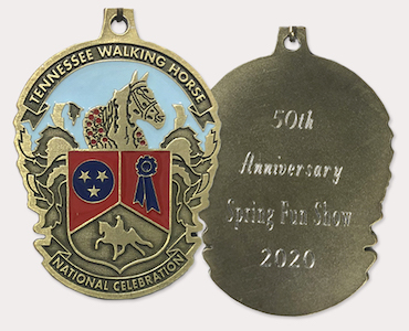 The 50th Annual Spring Fun Show will commemorate its special anniversary edition by having custom medallions placed around the necks of winning exhibitors. The special medallions will be available for all winners and include engraving on the back signaling the historic accomplishment. The engraving reads, “50th Anniversary Spring Fun Show 2020.” The front of the medallion is the logo of the Tennessee Walking Horse National Celebration.