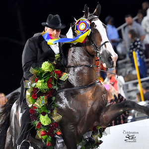 Nothing worthwhile comes easy and Master’s Razzle And Jazz followed a long and winding road to the World Grand Championship. There were changes in trainers and some health issues to overcome. Through it all Riddley, who owns the stallion with his wife, Lorie, remained confident.