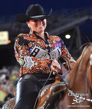 Center ring announcer Mark Farrar, Jr. welcomed seven entries into Maverick Arena for the Owner-Amateur Riders on Country Pleasure Walking Horses, Five Years & Under World Grand Championship. Sarah Smith, from Shelbyville, Tennessee, has been riding since childhood. She experienced her first ever world grand championship spotlight ride aboard She’s Never Been Kissed for co-owner S&P LLC from Saratoga, California. The duo was a unanimous selection of the judges. They also teamed with Smith’s first ever world championship in a preliminary class. The reserve champion was Lujoso with Amanda Manis riding for the partnership of Carolyn and Gary Pope and the Justin Manis Family. Zendaya was awarded the yellow ribbon with Bob Lawrence in the irons for co-owner Carroll Hutto.