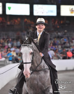 Mike Hilley was the call judge for the six entries in an equally competitive Section B of the Five Years & Over Walking Stallions (Canter) class. Master’s Razzel And Jazz once again had his fan base behind him and he and John Allan closed out the Saturday evening performance with their victory pass for the Alan Riddley Family from Kings Mountain, North Carolina. The duo have won twice this season and Callaway picked up two victories for the night. It was the second win in the class for the Riddley Family, co-owners of Minor Ordeal. Jose’ Cold Chills and Jimmy McConnell were second for LaRue, Ann and Beth McWaters. Hey, Tomcat was ridden to third by Jamie Lawrence for Joan and Roy Wester and Tomcat LLC.