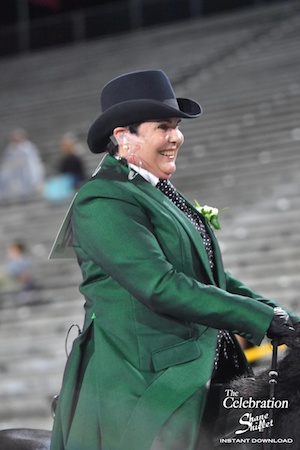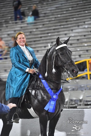 Brain Power and Kathy Baker, from Lewisburg, Tennessee, won their first ever Celebration world championship in division A of the Owner-Amateur Novice Lady Riders on Novice Walking Mares & Geldings. Lyndon B. Johnson and Dr. Renee Montgomery won the red streamer. Third place was awarded to Where’s My Cash, co-owned by rider Kendra White and Bobby White.