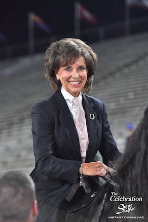 The Rev. Mark Ashley of New Hope Chapel gave the invocation. Margaret Eakin, announcement assistant in the center ring, put her considerable singing talents on display with her presentation of the National Anthem. Ronnie Spears kept the tradition alive at the 82nd Annual Tennessee Walking Horse National Celebration riding flag horse White Diamond Dollar.
